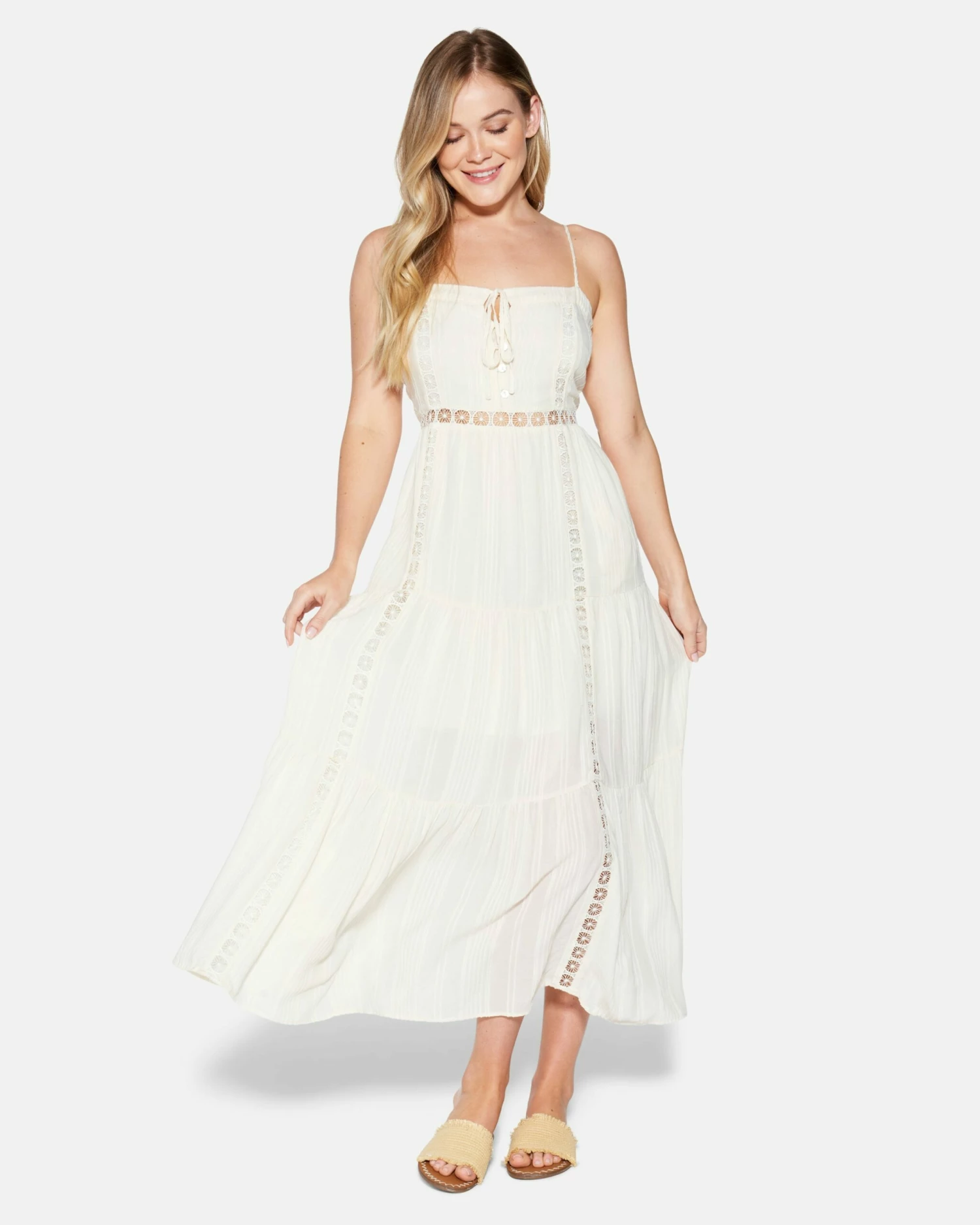 - Tie-front tiered midi dress