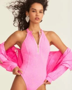 - Model Measurements: Height 5’10”, Waist 24, Bust 32, Hips 36