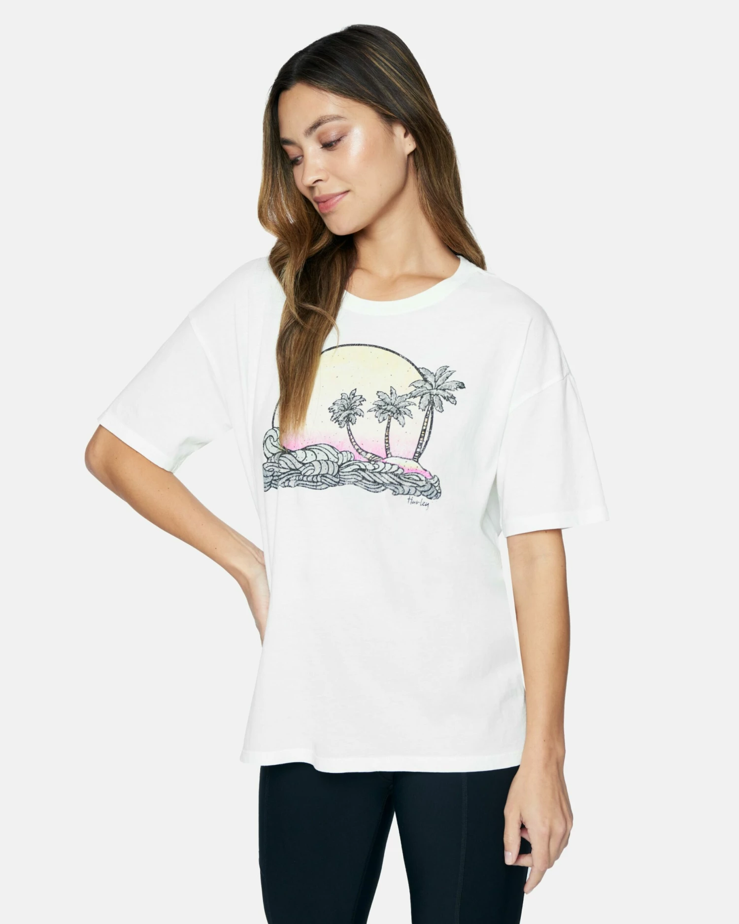The Choppy Oversized Tee keeps it dreamy with a tropical inspired graphic. A loose fitting tee, it’s also been treated with an enzyme wash for a super comfortable and flattering wear.