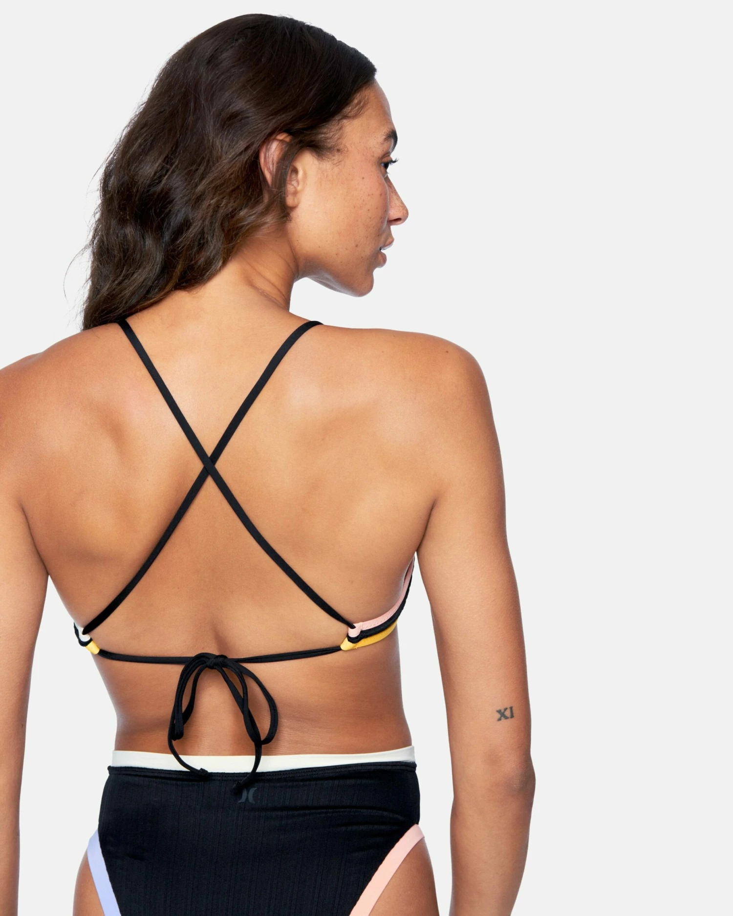 Itsy bitsy and oh-so-cute, The Colorblock Cross Back Bikini Top features a criss cross back (that’s adjustable for a custom fit) and light support for a comfortable wear all (beach) day long.