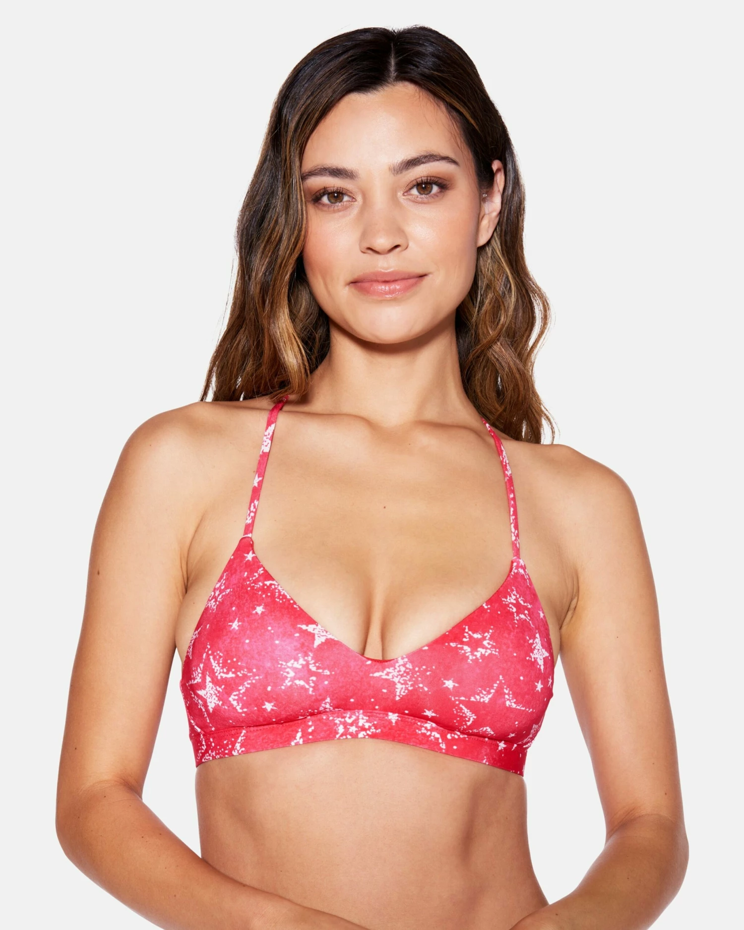 Made with internal stabilizers and light compression support, the STAR STRUCK ADJUSTABLE BIKINI TOP is a great option for any and all water activities. And with a bright star spangled print, be sure to rock it from the Fourth of July and beyond.
