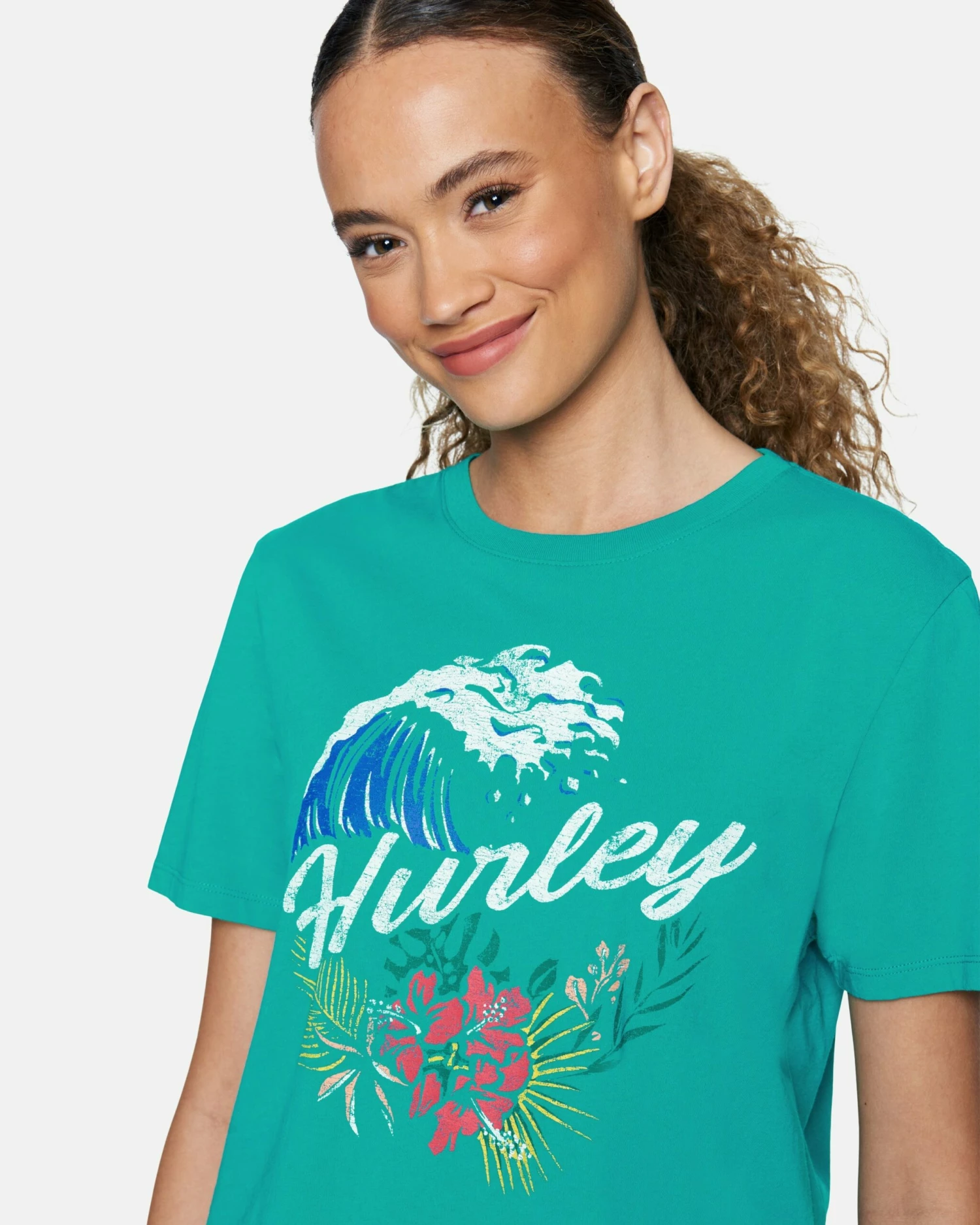 The next best thing to getting tubed, the Tubed Cropped Crew Short Sleeve T-Shirt features a retro-inspired graphic screen printed onto a soft cotton jersey that’s been treated with a garment wash for a vintage look and feel.