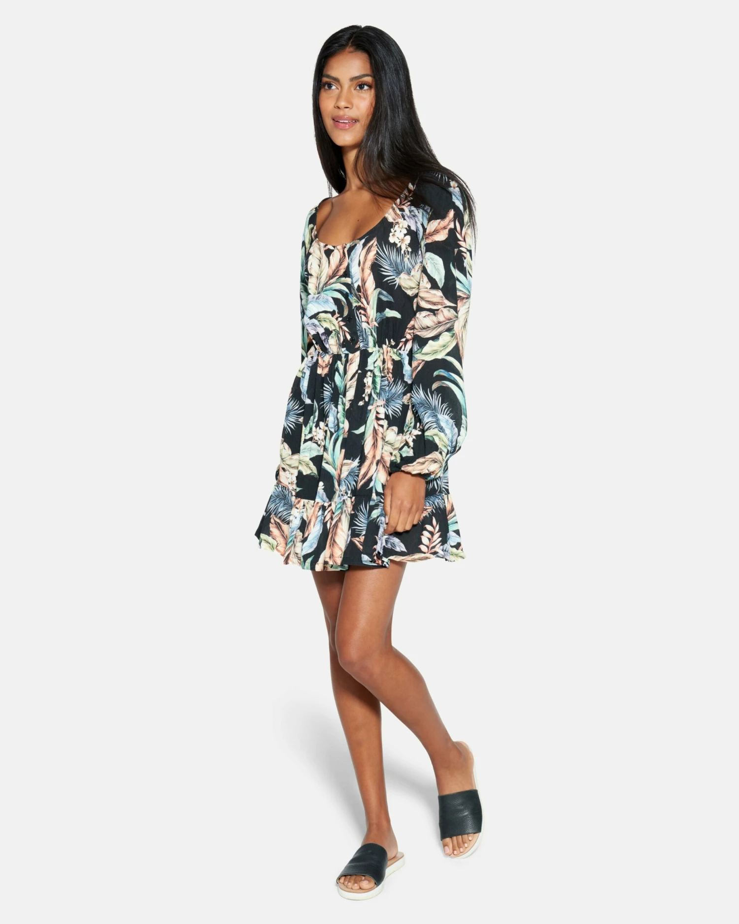 When it comes to the WISPY LEAVES SCOOP MINI DRESS, it’s all in the details. Details like functional front buttons, puff sleeves, and a scoop neckline.
