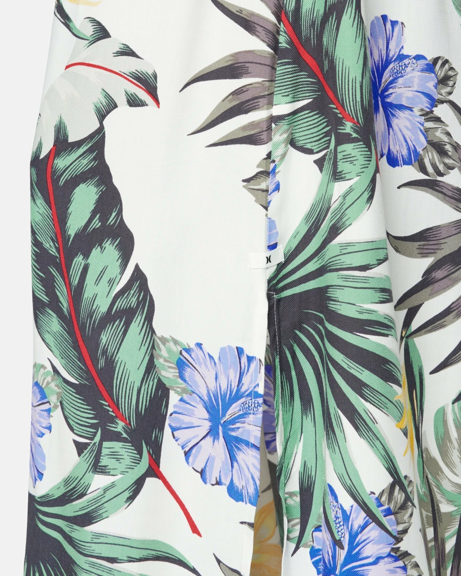 - Hurley woven label above wearer’s left side slit.